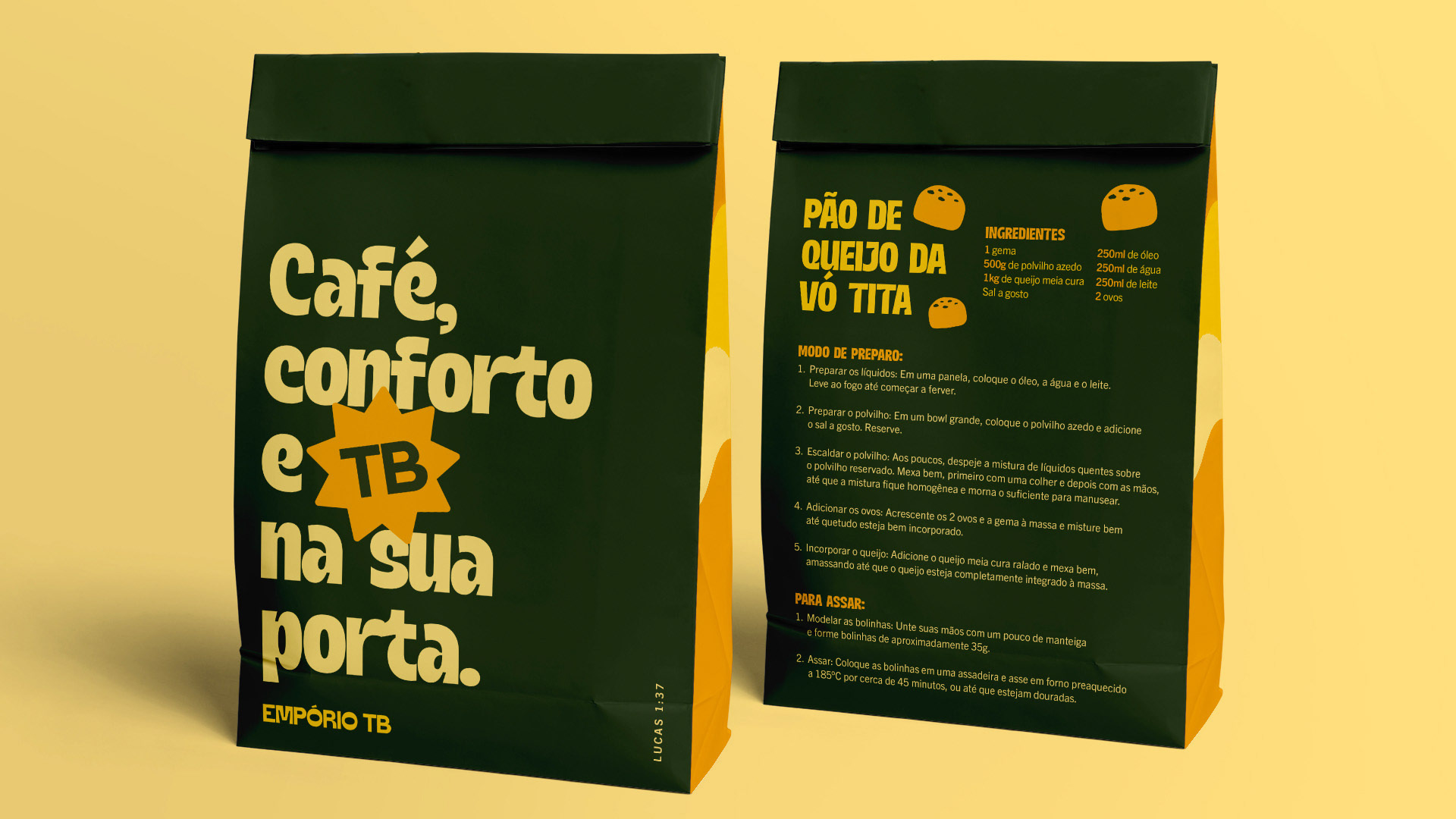 Criar uma identidade alegre, simples e acessível, que pudesse se destacar no feed, nas embalagens e no ponto de venda. O objetivo foi atualizar o universo visual para que refletisse esse novo momento, conectando tradição e contemporaneidade, mantendo a proximidade que faz do TB um lugar tão querido.